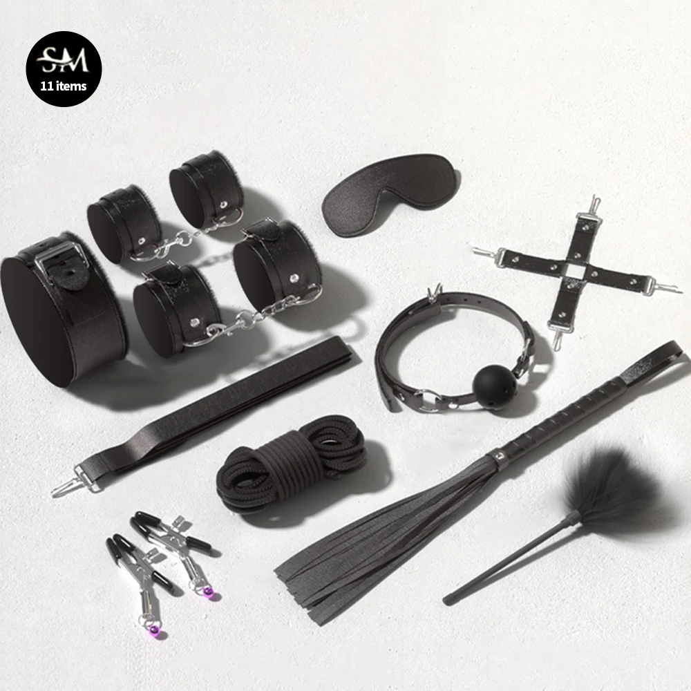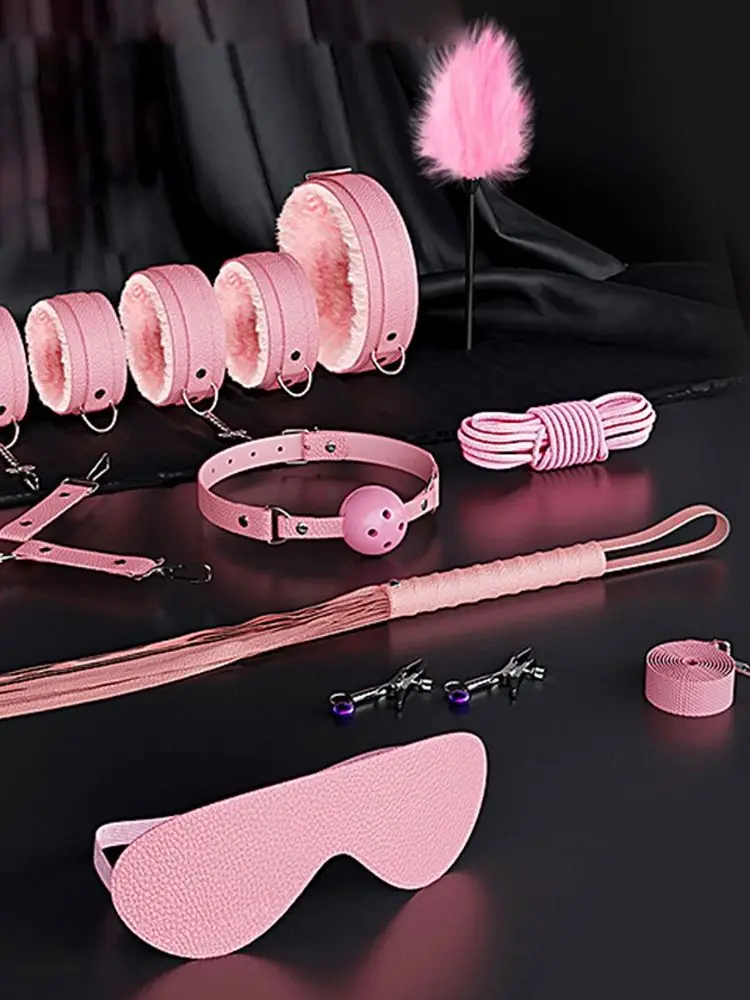 Lista de embalagem: plugue bucal + chicote + colar + um par de algemas + um par de algemas + corda de tração + máscara para os olhos + corda de amarração de 4 metros + um par de clipes de peito + fivela cruzada + bastão de penas