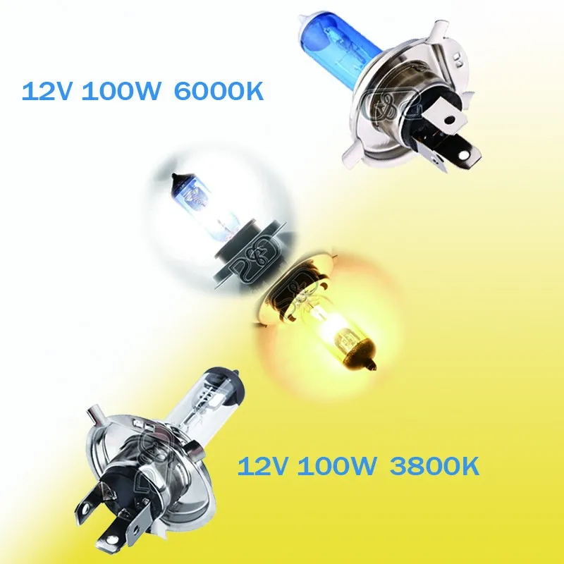 H4 100W 12V lâmpada halógena 6000K/3800K super branco amarelo nevoeiro luzes de alta potência faróis do carro lâmpada carro fonte de luz estacionamento