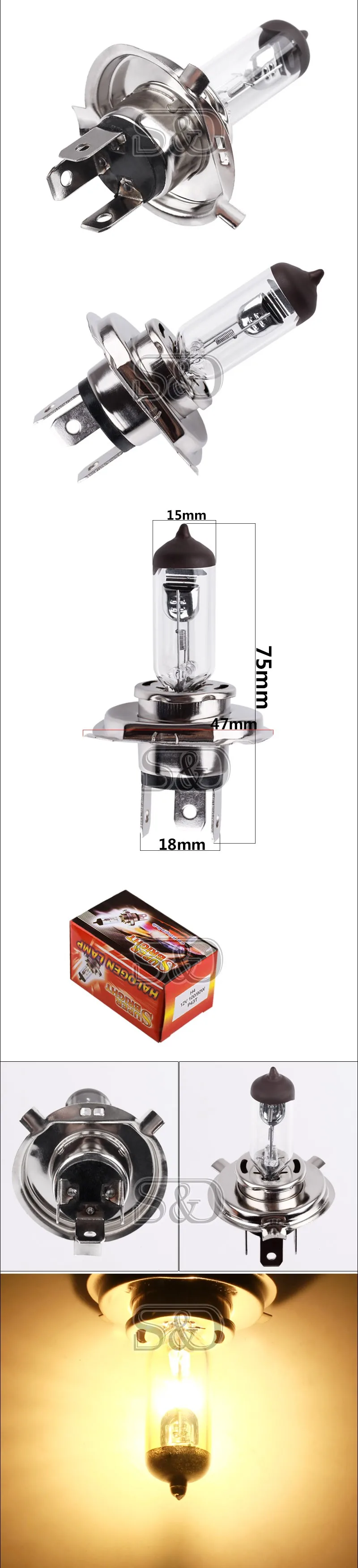 Lâmpada halógena h4, 100w, 12v, branca, amarela, farol de neblina, alta potência, fonte de luz para carro, estacionar