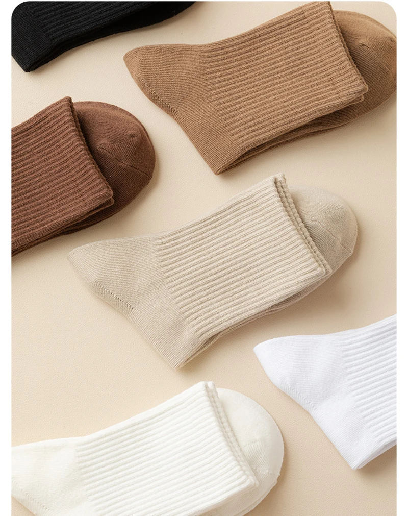 Meias masculinas retro cor sólida café branco cáqui bege respirável meias de algodão casual esporte na moda moda tubo médio meia longa