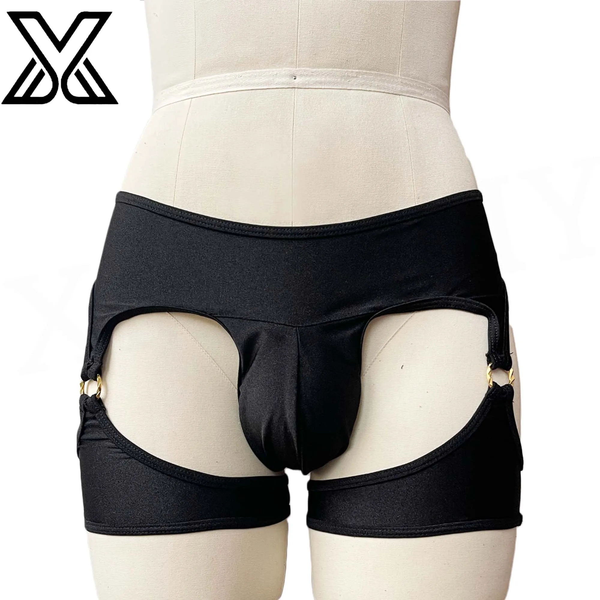 XMJXMY Roupa íntima masculina sexy e sexy com nádegas expostas e anel de metal oco, trajes de banho de praia